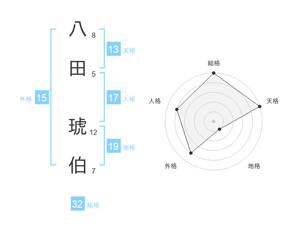八田 琥伯さんを姓名の画数から五運を鑑定