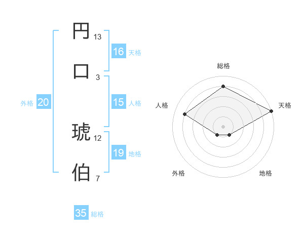円口 琥伯さんを姓名の画数から五運を鑑定