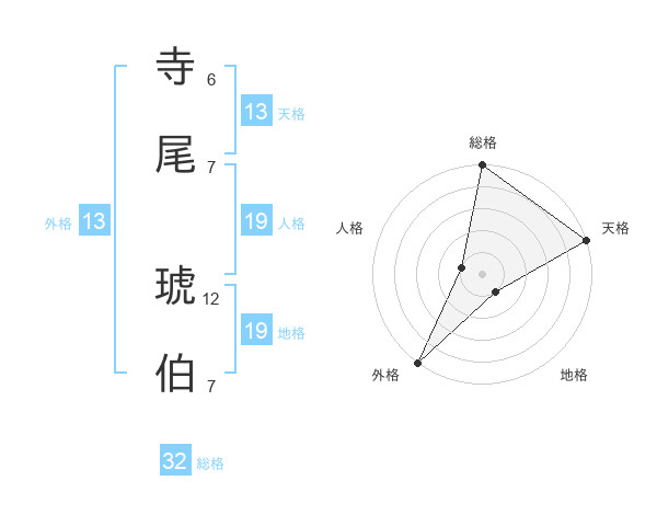 寺尾 琥伯さんの総格は32画の5点!