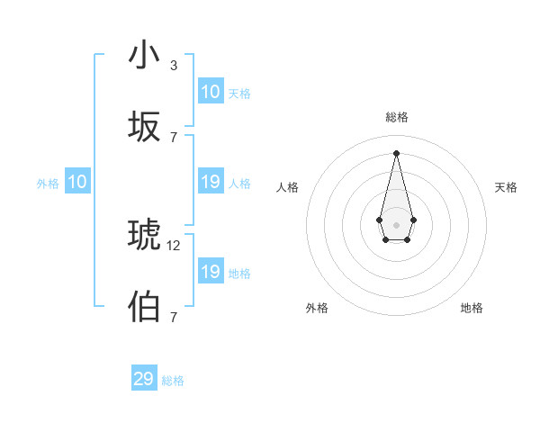 小坂 琥伯さんを姓名の画数から五運を鑑定