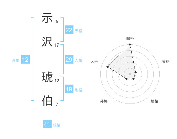 示沢 琥伯さんを姓名の画数から五運を鑑定