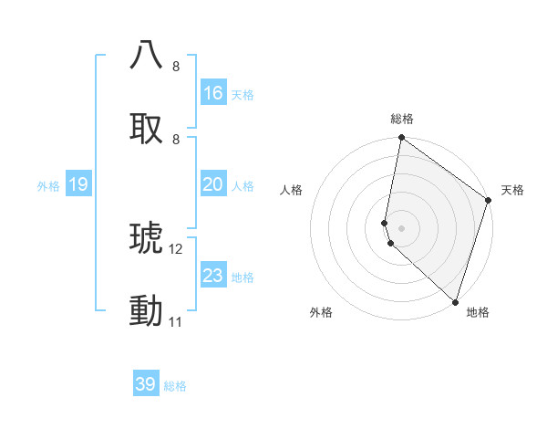 八取 琥動さんの地格は23画の5点!