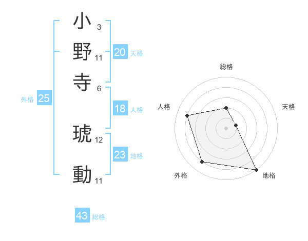 小野寺 琥動さんの外格は25画の4点!