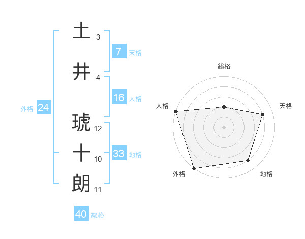 土井 琥十朗さんの地格は33画の4点!