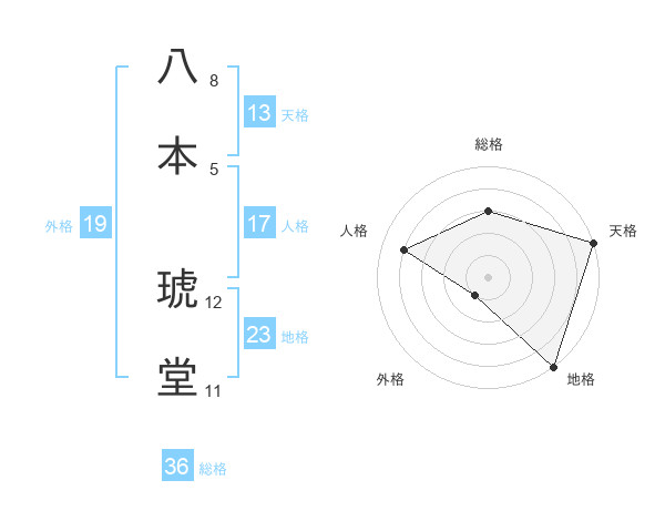 八本 琥堂さんの天格は13画の5点!