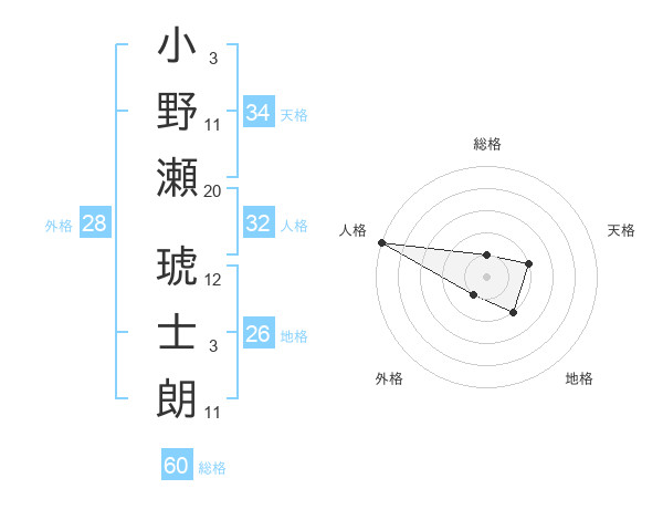 小野瀬 琥士朗さんを姓名の画数から五運を鑑定