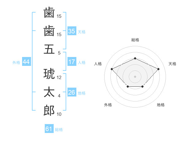 歯歯五 琥太郎さんの名前の鑑定結果は!