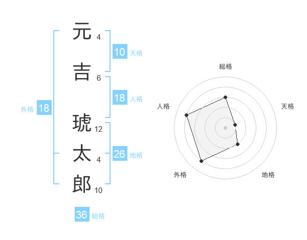 元吉 琥太郎さんを姓名の画数から五運を鑑定