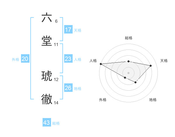 六堂 琥徹さんを姓名の画数から五運を鑑定