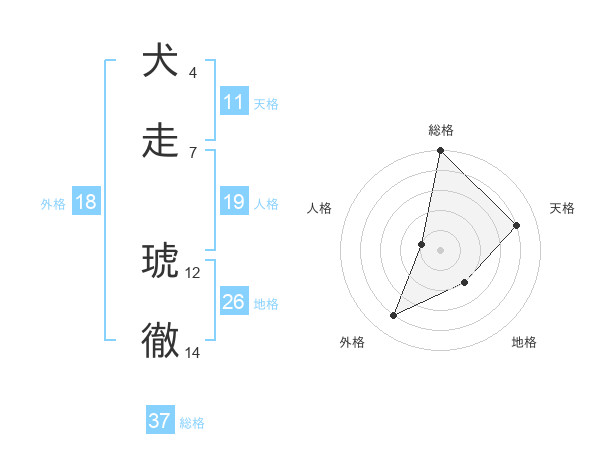 犬走 琥徹さんの総格は37画の5点!
