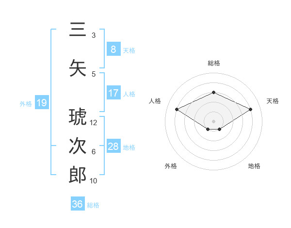 三矢 琥次郎さんを姓名の画数から五運を鑑定