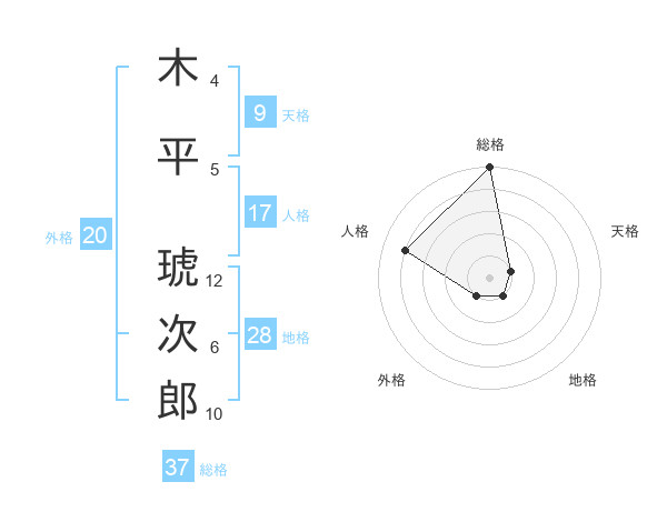 木平 琥次郎さんの総格は37画の5点!