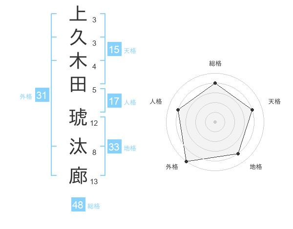 上久木田 琥汰廊さんを姓名の画数から五運を鑑定