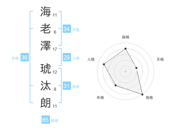 海老澤 琥汰朗さんを姓名の画数から五運を鑑定
