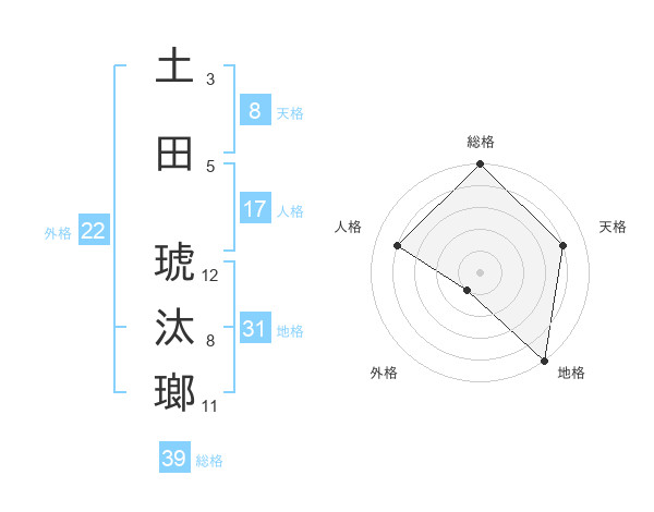 土田 琥汰瑯さんの総格は39画の5点!