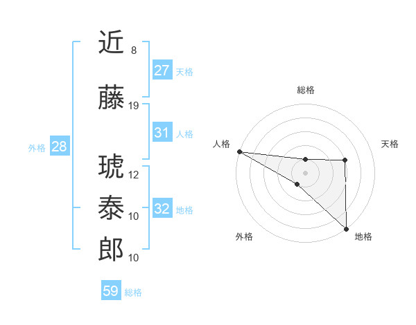 近藤 琥泰郎さんを姓名の画数から五運を鑑定