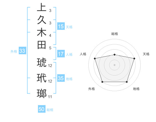 上久木田 琥玳瑯さんの天格は15画の4点!