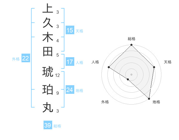 上久木田 琥珀丸さんを姓名の画数から五運を鑑定