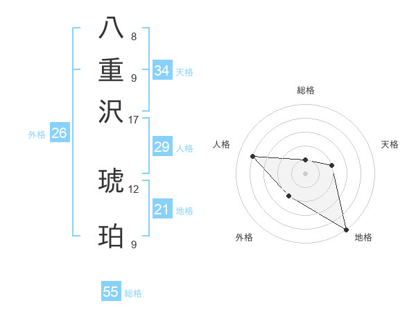 八重沢 琥珀さんを姓名の画数から五運を鑑定
