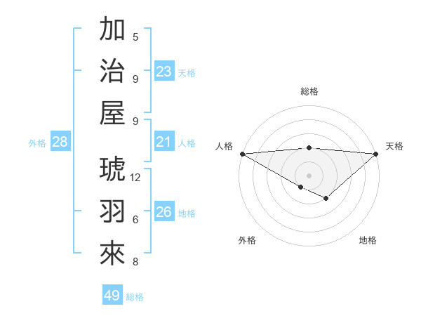 加治屋 琥羽來さんを姓名の画数から五運を鑑定