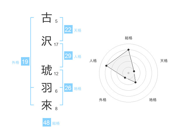 古沢 琥羽來さんを姓名の画数から五運を鑑定