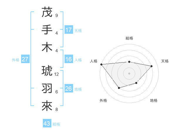 茂手木 琥羽來さんを姓名の画数から五運を鑑定
