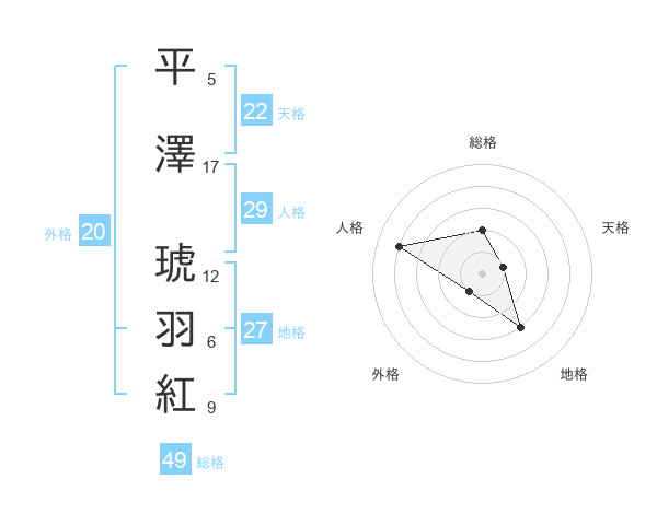 平澤 琥羽紅さんを姓名の画数から五運を鑑定