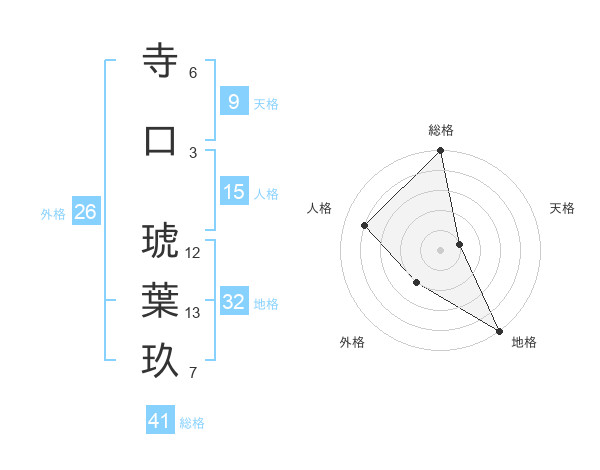 寺口 琥葉玖さんの地格は32画の5点!