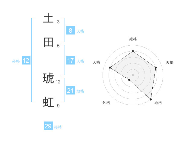 土田 琥虹さんを姓名の画数から五運を鑑定