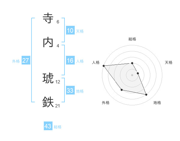 寺内 琥鉄さんの総格は43画の2点!