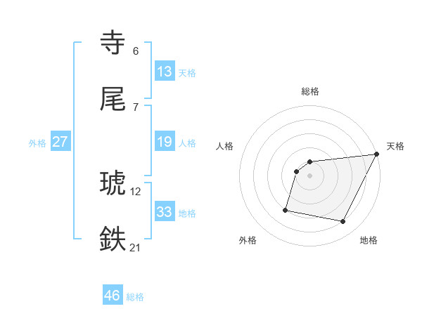 寺尾 琥鉄さんの天格は13画の5点!