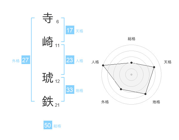 寺崎 琥鉄さんを姓名の画数から五運を鑑定