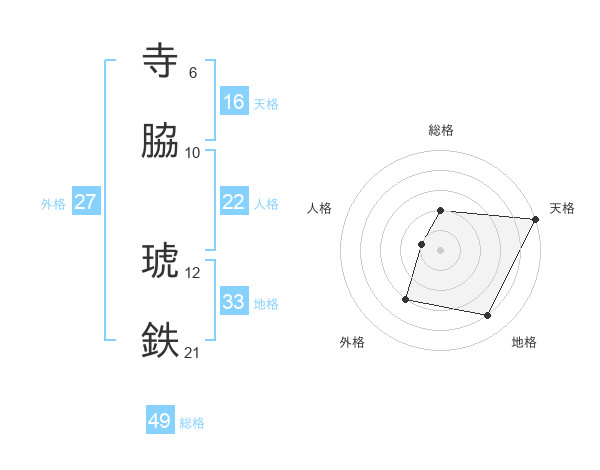寺脇 琥鉄さんの総格は49画の2点!