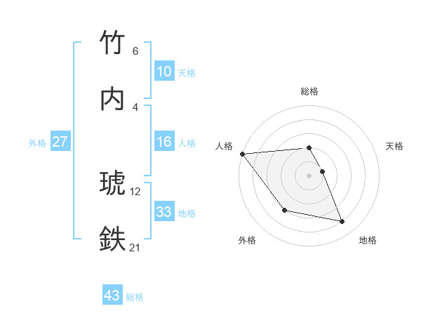 竹内 琥鉄さんを姓名の画数から五運を鑑定