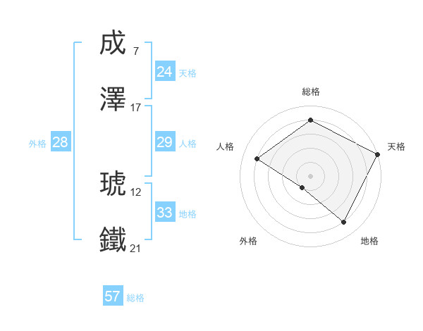 成澤 琥鐵さんを姓名の画数から五運を鑑定