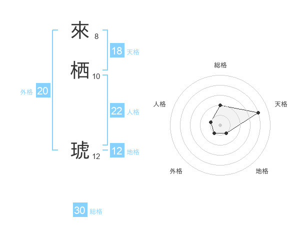 來栖 琥さんの総格は30画の2点!