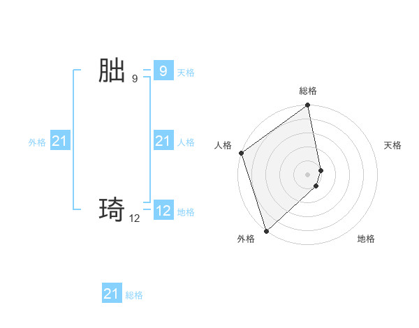 朏 琦さんの外格は21画の5点!