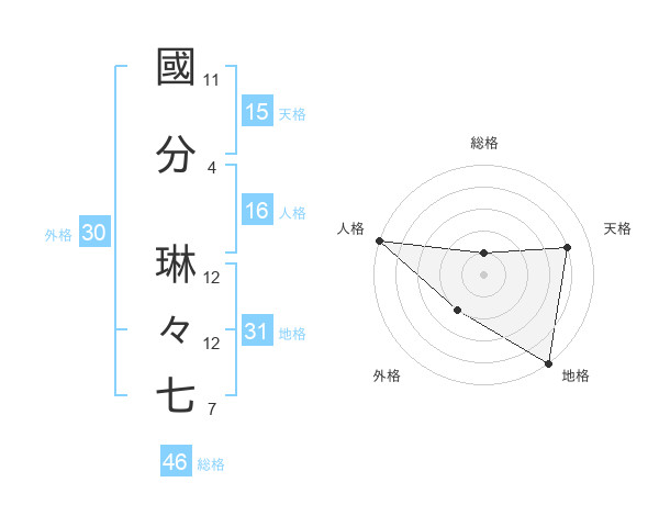 國分 琳々七さんを姓名の画数から五運を鑑定