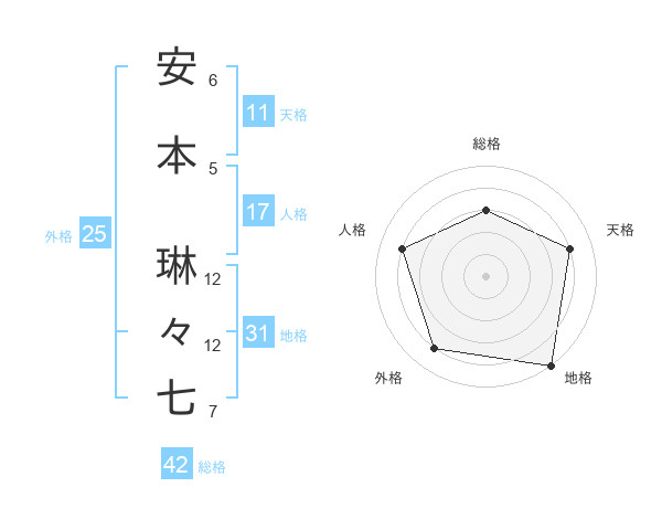 安本 琳々七さんを姓名の画数から五運を鑑定
