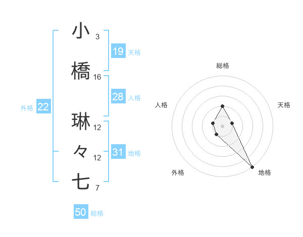 小橋 琳々七さんの総格は50画の2点