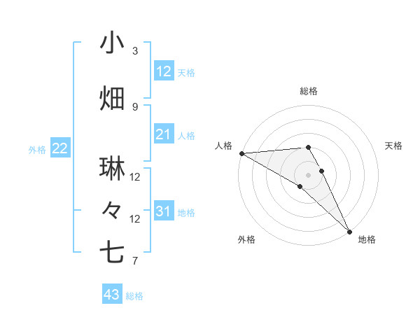 小畑 琳々七さんの天格は12画の1点!
