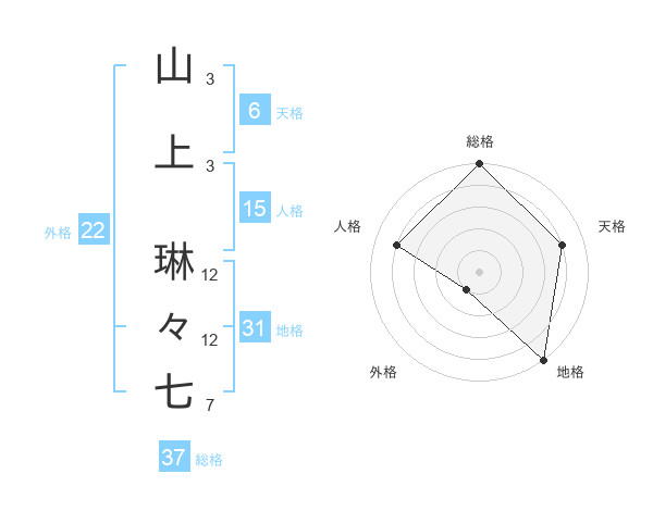 山上 琳々七さんの総格は37画の5点!