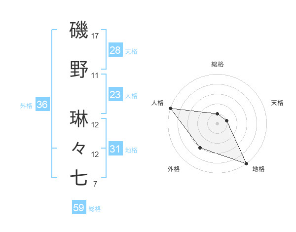 磯野 琳々七さんを姓名の画数から五運を鑑定