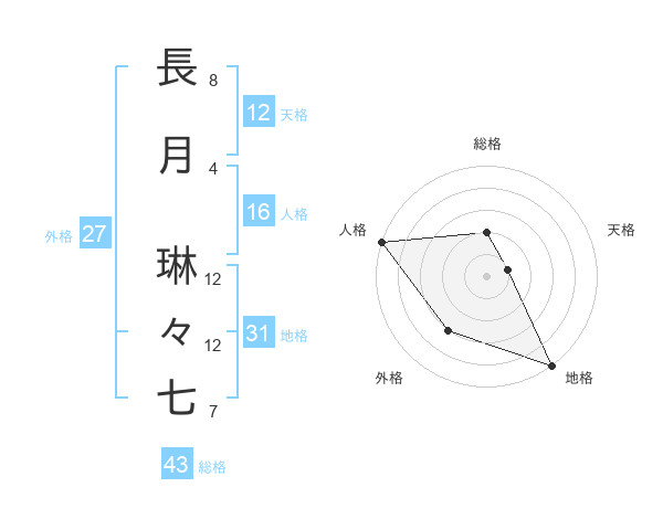 長月 琳々七さんを姓名の画数から五運を鑑定