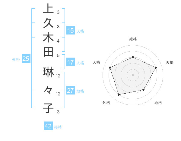 上久木田 琳々子さんを姓名の画数から五運を鑑定