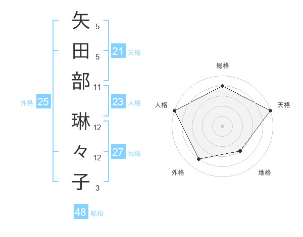 矢田部 琳々子さんを姓名の画数から五運を鑑定