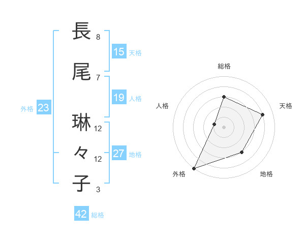 長尾 琳々子さんを姓名の画数から五運を鑑定