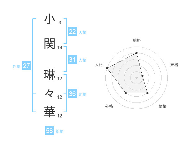 小関 琳々華さんを姓名の画数から五運を鑑定