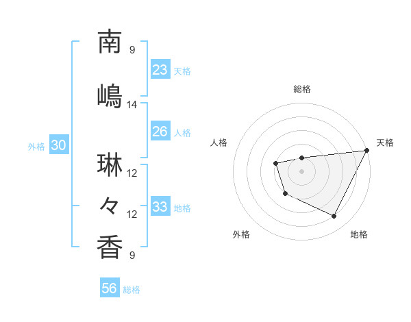 南嶋 琳々香さんを姓名の画数から五運を鑑定