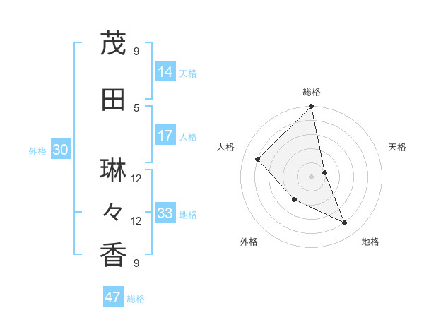 茂田 琳々香さんの総格は47画の5点!